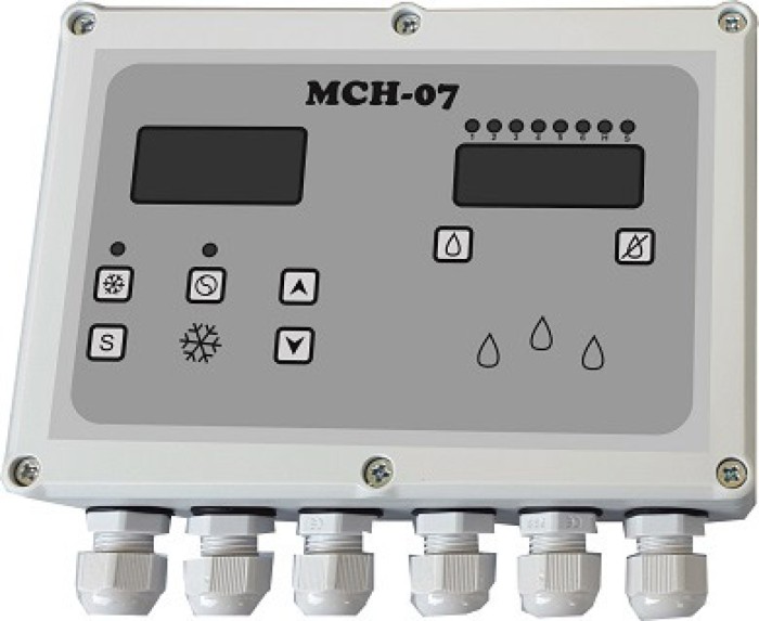 Sterownik MCH-07 jest uniwersalnym zespolonym sterownikiem przeznaczonym do zastosowania w zbiornikach mleka, pozwala na schładzanie mleka będącego w zbiorniku oraz przeprowadzenie procesu mycia zbiornika.