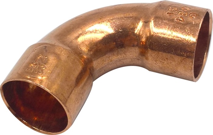 Dwukielichowy łuk 90° Cu LWxLW 15mm Conex. Miedź chłodnicza.