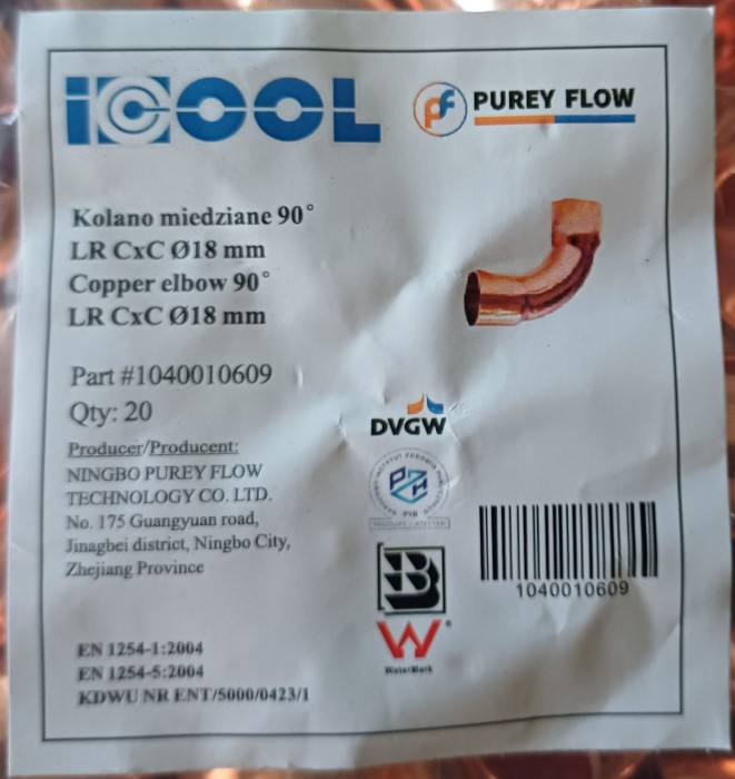 Cu Łuk 90° LWxLW 18mm iCOOL do lutowania • dwukielichowy