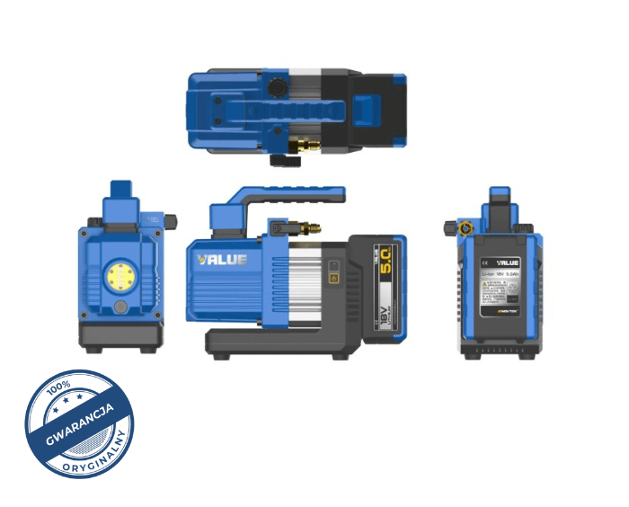 ► model VALUE VRP2DLi ► do czynników A2L, np. R-32, R-1234yf ► ​​​​​​​przepływ 57 l / min ► próżnia 23 mikrony ► przyłącze 1/4" SAE ► bateria 18 V / 5 Ah ► wymiary [mm] 233 x 90 x 190 ► waga 3,2 kg ► pojemność oleju 160 ml