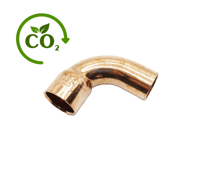 Lutowany, jednokielichowy, wysokociśnieniowy ( do 130 bar) łuk 90° LZxLW 1/2” ze stopu K65 - CUFe2P do instalacji chłodniczych. Dedykowany do czynnika CO2 (R744). Zakres pracy od -196oC do +150oC. Łączenie srebrnym lutem twardym z min. 2 %Ag. Dzięki obecności żelaza można go odróżnić za pomocą magnesu neodymowego. Złączka zgodna z systemami CuFe: KME - CL12, HALCOR - TALOS XS, Mueller - XHP, Sanha RefHP.