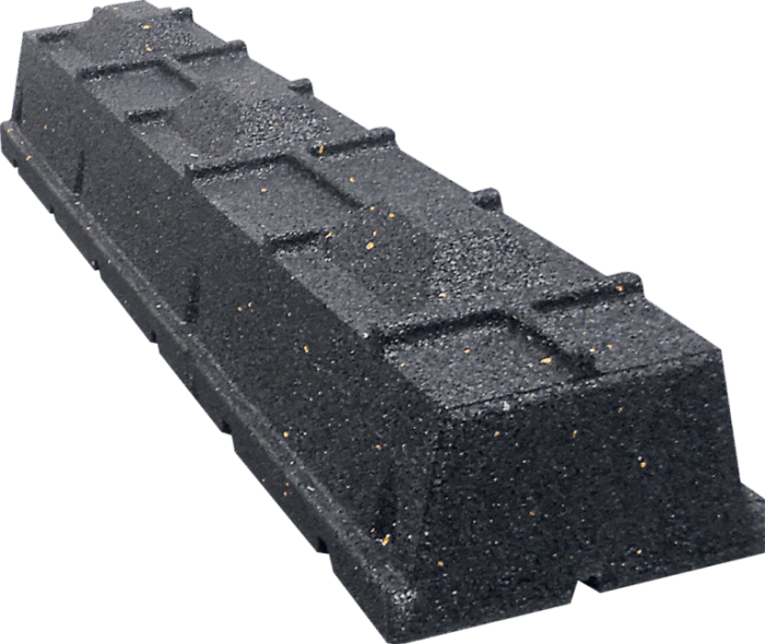Podwyższenie do podstawy Rubber Block 600 Riser S-746 pod pompy ciepła, klimatyzatory i agregaty zostało wykonane z gumy pochodzącej z recyklingu (SBR - Kauczuk butadienowo-styrenowy). Zaprojektowane tak, aby umożliwić instalację zewnętrznych jednostek skraplających co najmniej 200 mm od poziomu powierzchni. Dolna część podwyższenia Riser S-746 została wydrążona w celu skutecznego odprowadzania wody. Doskonała absorpcja wibracji i hałasu dzięki zastosowanemu granulatowi, który gwarantuje stabilność i długotrwałą odporność.