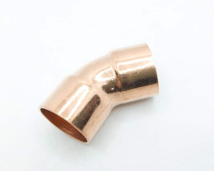 Cu Łuk 45° LWxLW 16mm Besco do lutowania • dwukielichowy odpowiedni do lutowania kapilarnego rur miedzianych zgodnie z PN-EN 1057.Materiał: miedźZgodność z normami: EN1254